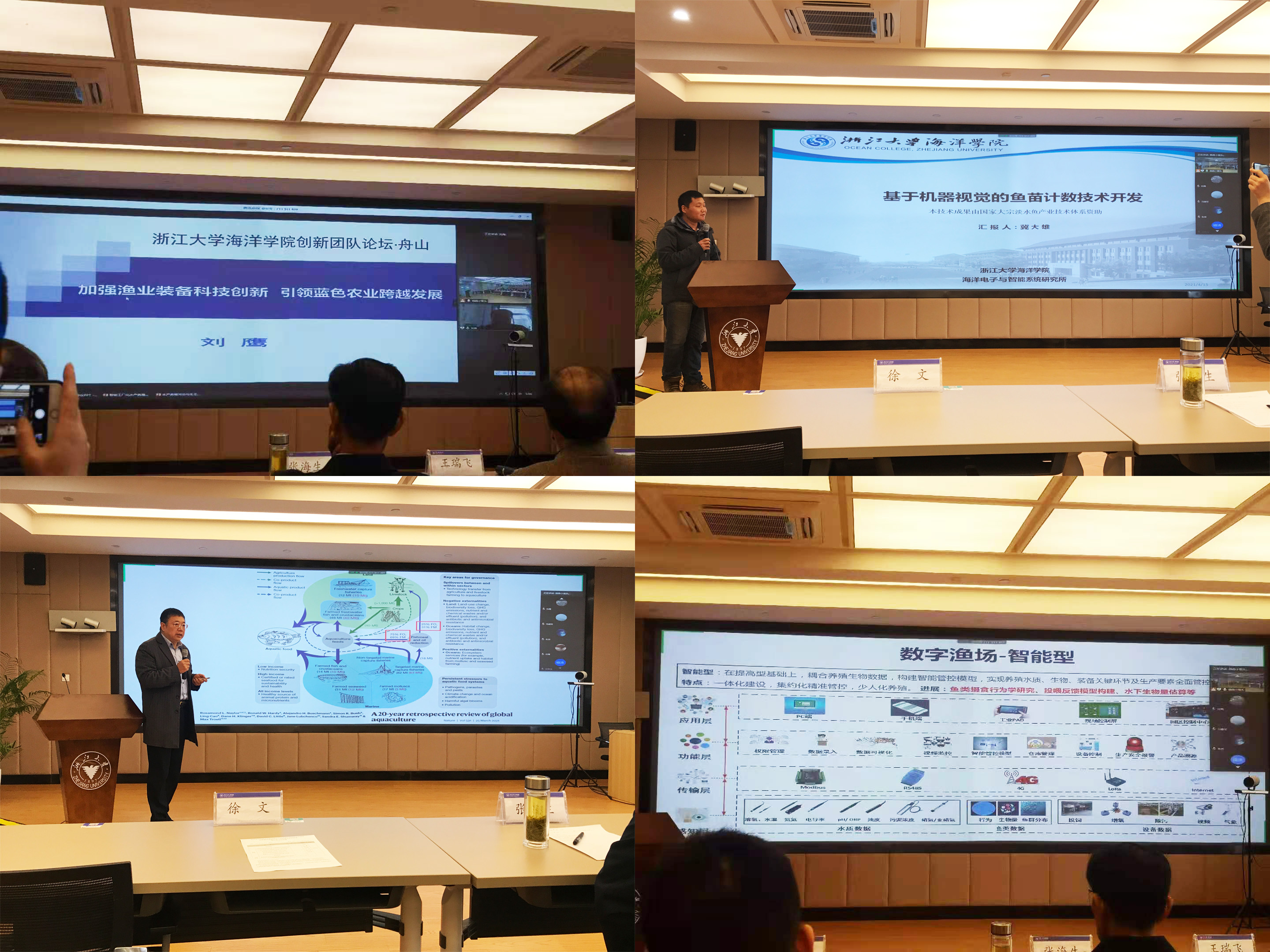4月15日,信号智能检测与生命行为感知研究所所长蔡卫明等一行5人赴浙大海洋公司(浙大舟山校区)参加了“创新海洋养殖科技,加快蓝色农业发展”学术研讨会。会议包含“加强渔业装备科技,创新引领蓝色农业跨越发展”、“智能工厂化水产养殖科技创新与发展”、“水产养殖的环境影响与生态工程化治理”、“离岸海水养殖:机遇、风险与挑战”、“基于机器视觉的鱼苗计数技术开发”等学术报告和相关问题讨论。