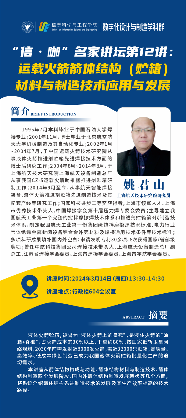 “信·咖”名家讲坛第十二讲:运载火箭箭体结构(贮箱)材料与制造技术应用与发展