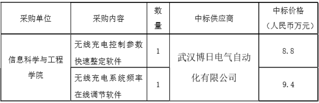 根据《浙江大学宁波理工公司招投标管理办法》的相关文件,永利65335com对无线充电上位机软件进行了询价,经过评标小组评审,现将采购结果公告如下: