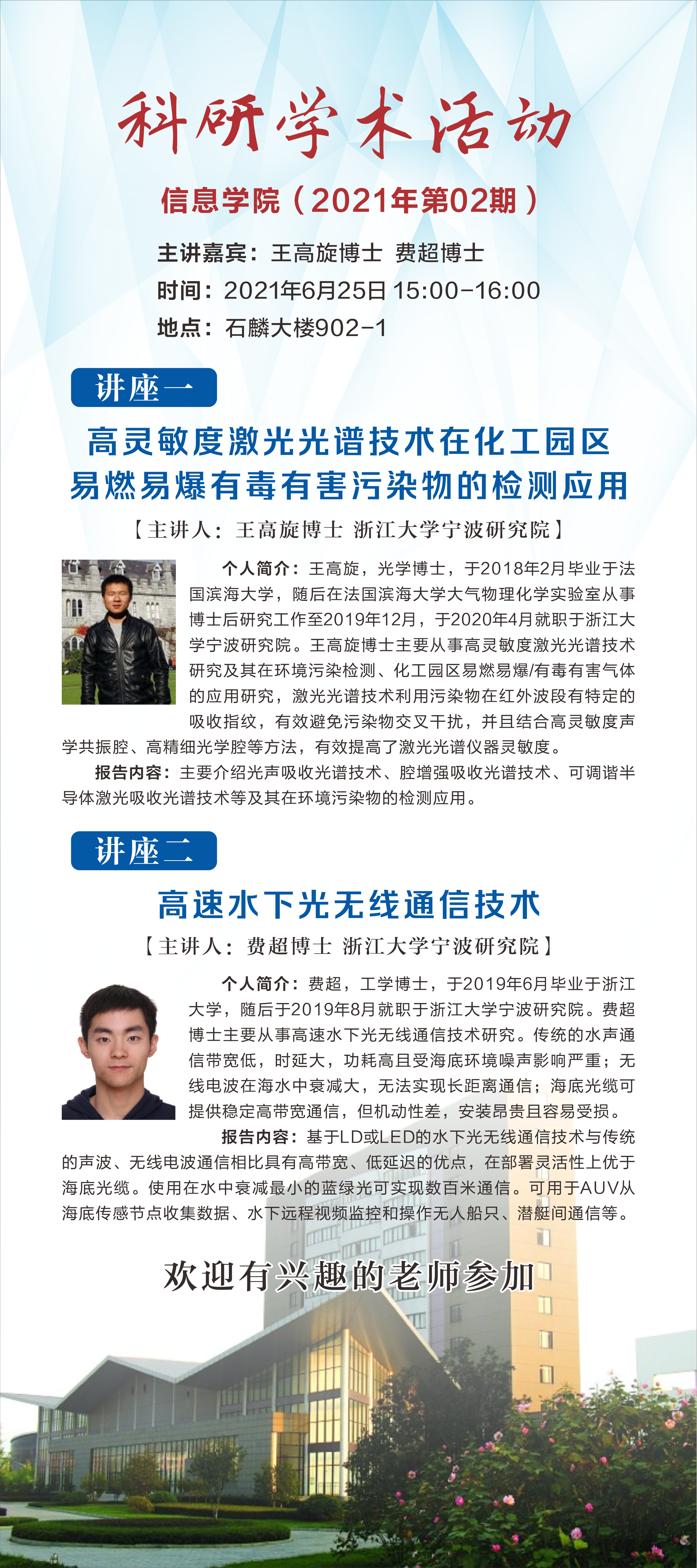 费超,工学博士,于2019年6月毕业于浙江大学,随后于2019年8月就职于浙江大学宁波研究院。费超博士主要从事高速水下光无线通信技术研究。
