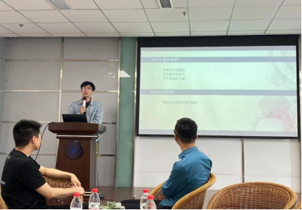 立志求学、攀登学术高峰的员工张盛分享了他选择考研、考博的心路历程和备考经历。张盛认为进一步读研深造使自己专业学习更深入,在就业时可以提高竞争力,凭借这一简单的初衷他才选择了考研。三年的研究生学习让张盛对专业掌握更加精深,再次决定继续读博深造,他鼓励在座的同学寻找适合自己的方向,多吸取前辈经验,积极参加学科竞赛,积累项目、实践经验,无论就业还是升学都大有帮助。