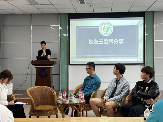 就职于公司合作企业的王春辉从获取工作信息、求职、工作岗位经历等展开分享,他强调同学们求职就业要综合分析自己的优势,寻找适合自己的岗位,要去公司实地考察参观,了解公司环境、人文氛围等。他强调,找自己热爱的工作才能有足够内驱力推动自己在工作岗位中前进,选工作适应期短暂痛苦会有,但只要努力会越来越好。