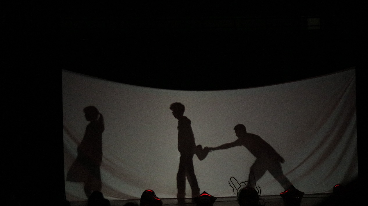 《青春校园》幕布剧在影子的动作中带我们重温老员工活中的重要节点:军训、恋爱……轻盈的动作中绽放着青春的柔韧与热情。