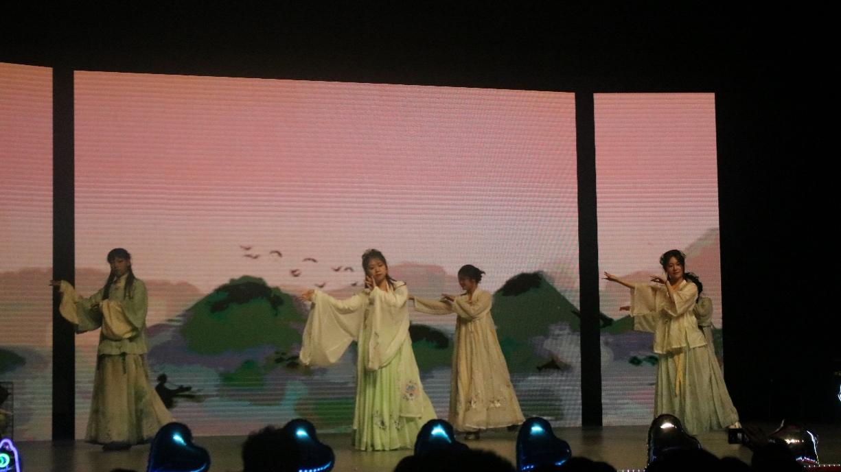 接下来是晚会的第二篇章——“和光同尘,与时舒卷”。宁理的清晨与夜晚见证了毕业生们在这个园子里为了梦想而奋斗的时光。以热闹、活泼的拉丁舞蹈为基调的舞蹈《TALK THAT TALK》,其简单有趣的动作,令观众欢呼雀跃,受到观众的一致好评。