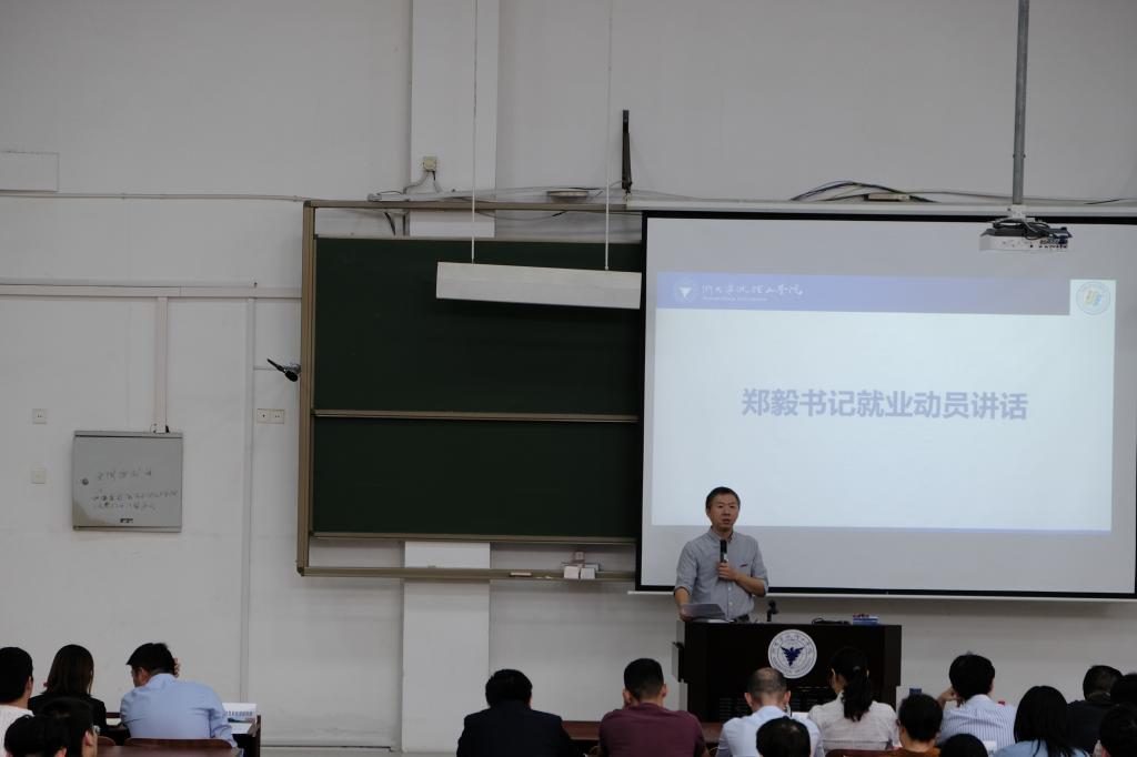 大会伊始,永利65335com党委书记郑毅作就业动员讲话,要求同学们尽早明确目标、逐步积累资源、持续保持追求,并希望毕业生们要树立积极的就业心态,形成合理的就业选择,打拼无悔的职业生涯。