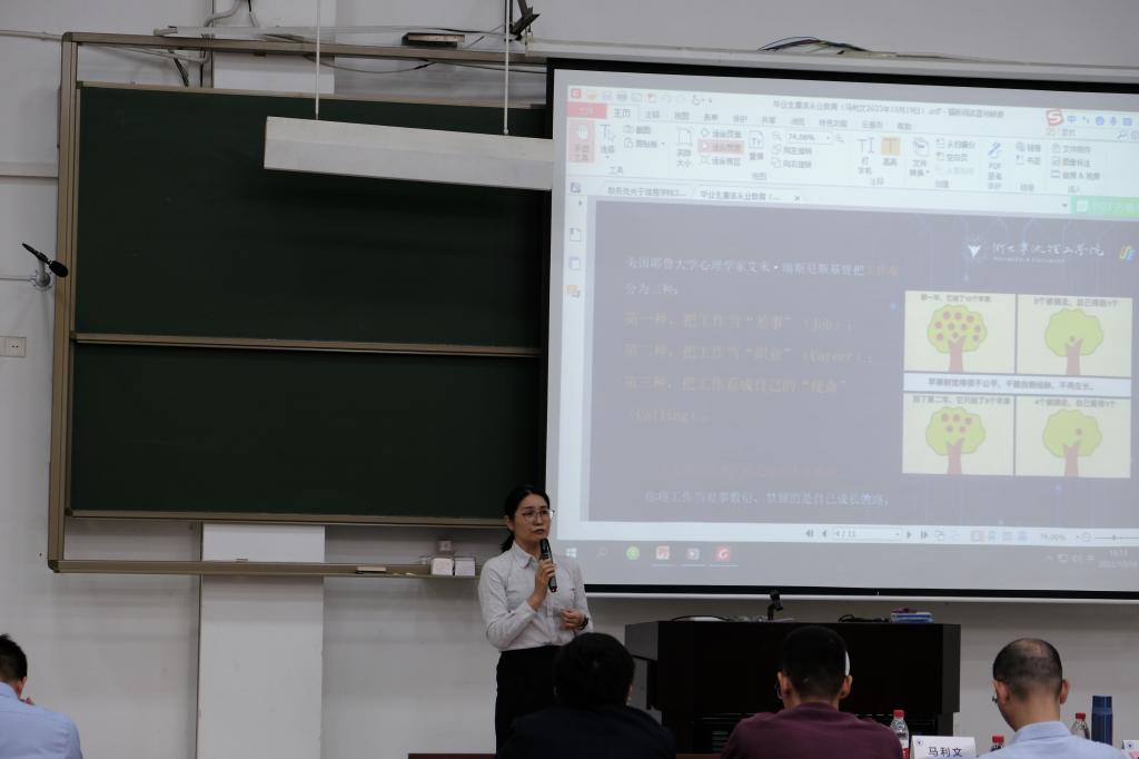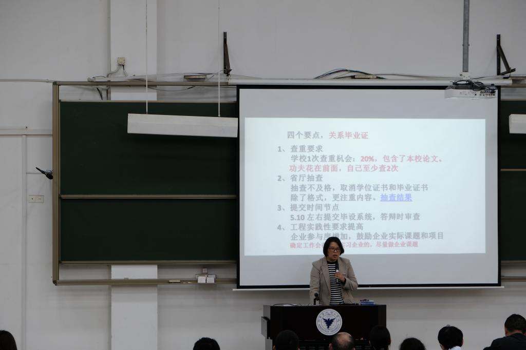 公司副经理陶吉利重点介绍了毕业设计安排,从毕业设计查重、抽查、答辩等方面对毕业生们提出了明确的要求。