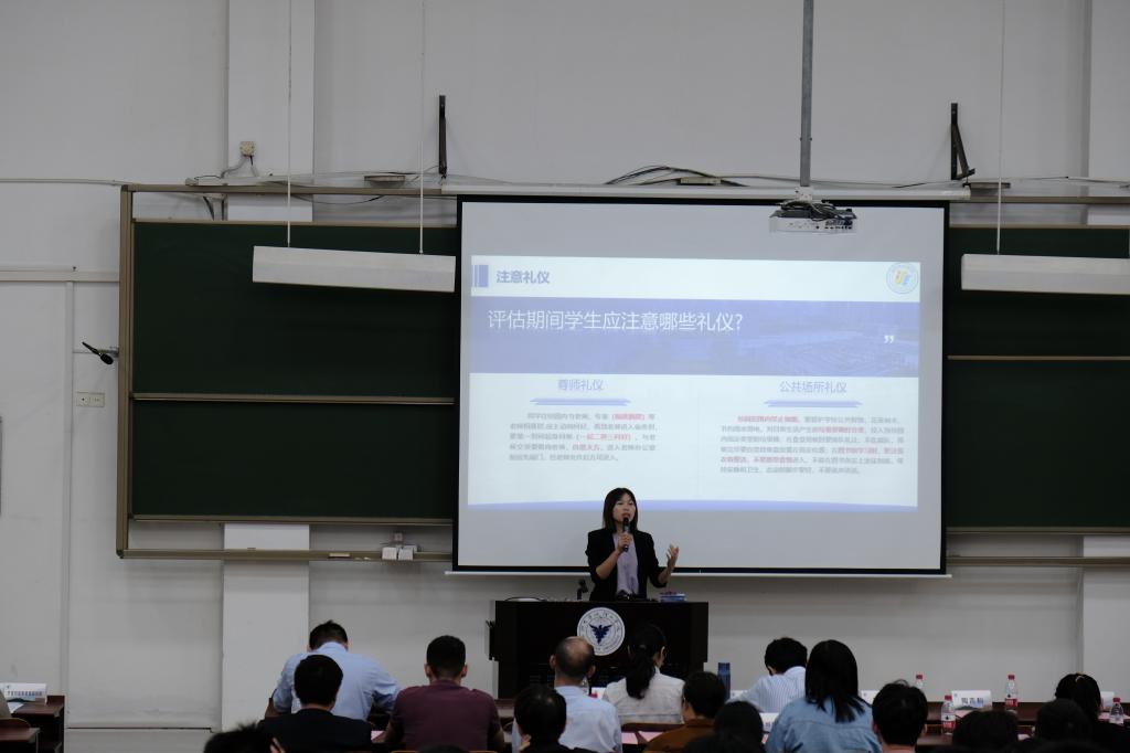 学工办主管董俊娜作2024届毕业生本科教学合格评估动员培训,对同学们课堂纪律、文明礼仪、行为规范提出了严格要求,号召同学们以最好的风貌迎接本科教学合格评估。学工办副主管蒋鹏涛从毕业季工作安排出发,就毕业生关心的企业招聘、签约流程、考研升学等问题进行了详细讲解。