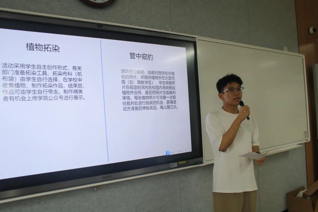 4月27号下午,“保护母亲河,创意迎五一”主题专项活动在NB215成功举行。本次活动共分为两大模块:植物拓染和管中窥豹。