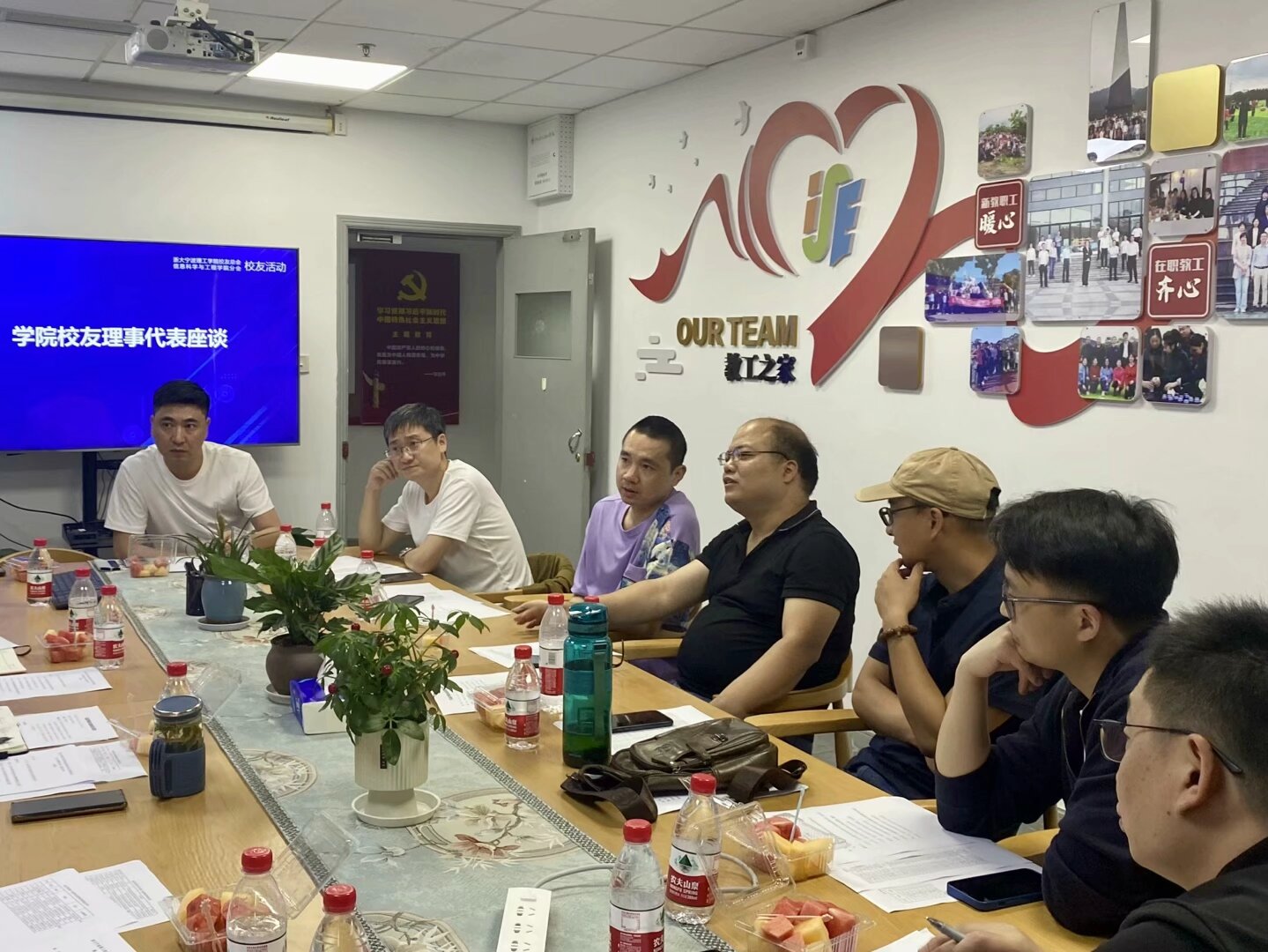 当日返校的七位员工理事们围绕公司员工会组织架构,以及后续员工工作如何开展等进行深入讨论。