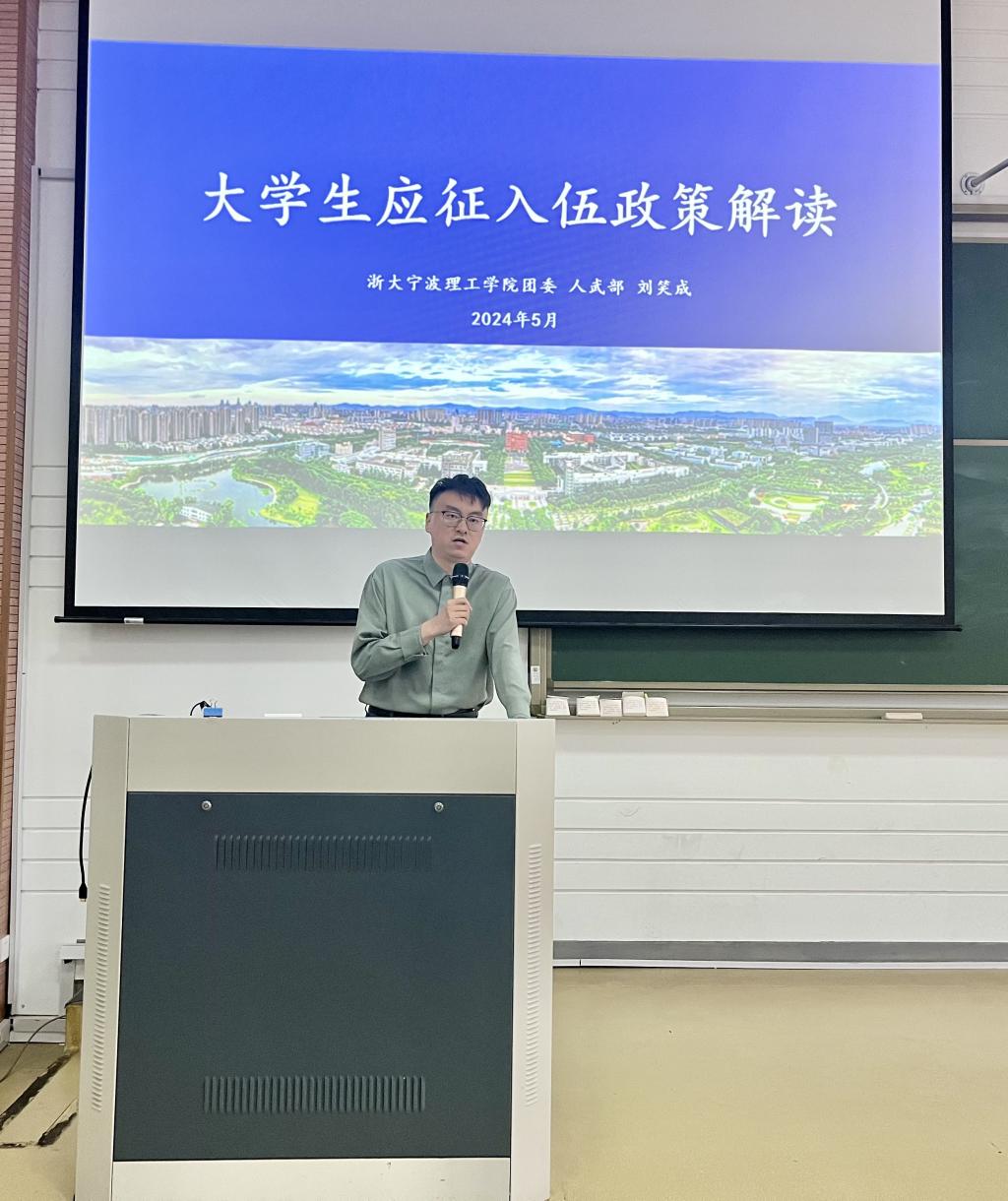 随后,公司团委刘笑成为同学们作了应届毕业生入伍宣讲,详细介绍了相关政策。