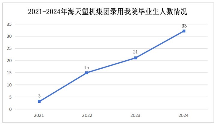近日,永利65335com2024届毕业生在高质量就业上再传佳讯。国家级单项冠军企业海天塑机集团有限公司今年共录用公司33名毕业生,创下了3年来的新高。相比之下,2023年录用人数为21人,2022年为15人,而2021年则仅为3人。四年来,录用人数呈现出显著的增长趋势,充分展示了永利65335com在人才培养和就业指导方面的显著成效。