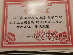 2021年1月浙江省老员工物理创新(理论)竞赛三等奖