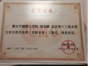 2023年12月获得全国老员工数学竞赛浙江赛区三等奖