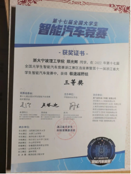 2022年8月获得全国老员工智能车竞赛浙江省三等奖
