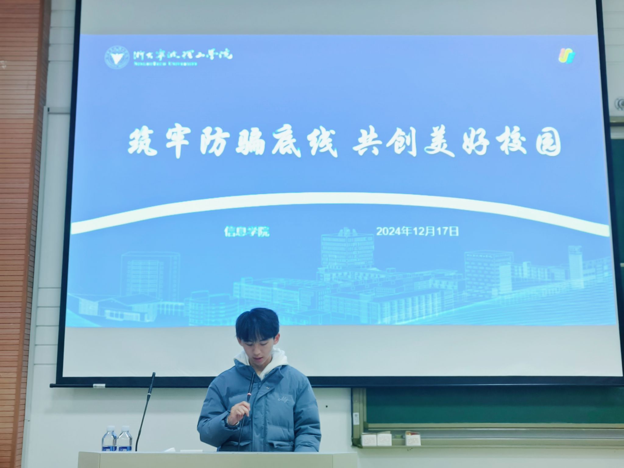 12月17日晚18:00,公司在SB104教室隆重举办了以“筑牢防骗底线共创美好校园”为主题的安全讲座。此次讲座旨在提升同学们的防骗意识,共同营造一个安全和谐的校园环境。