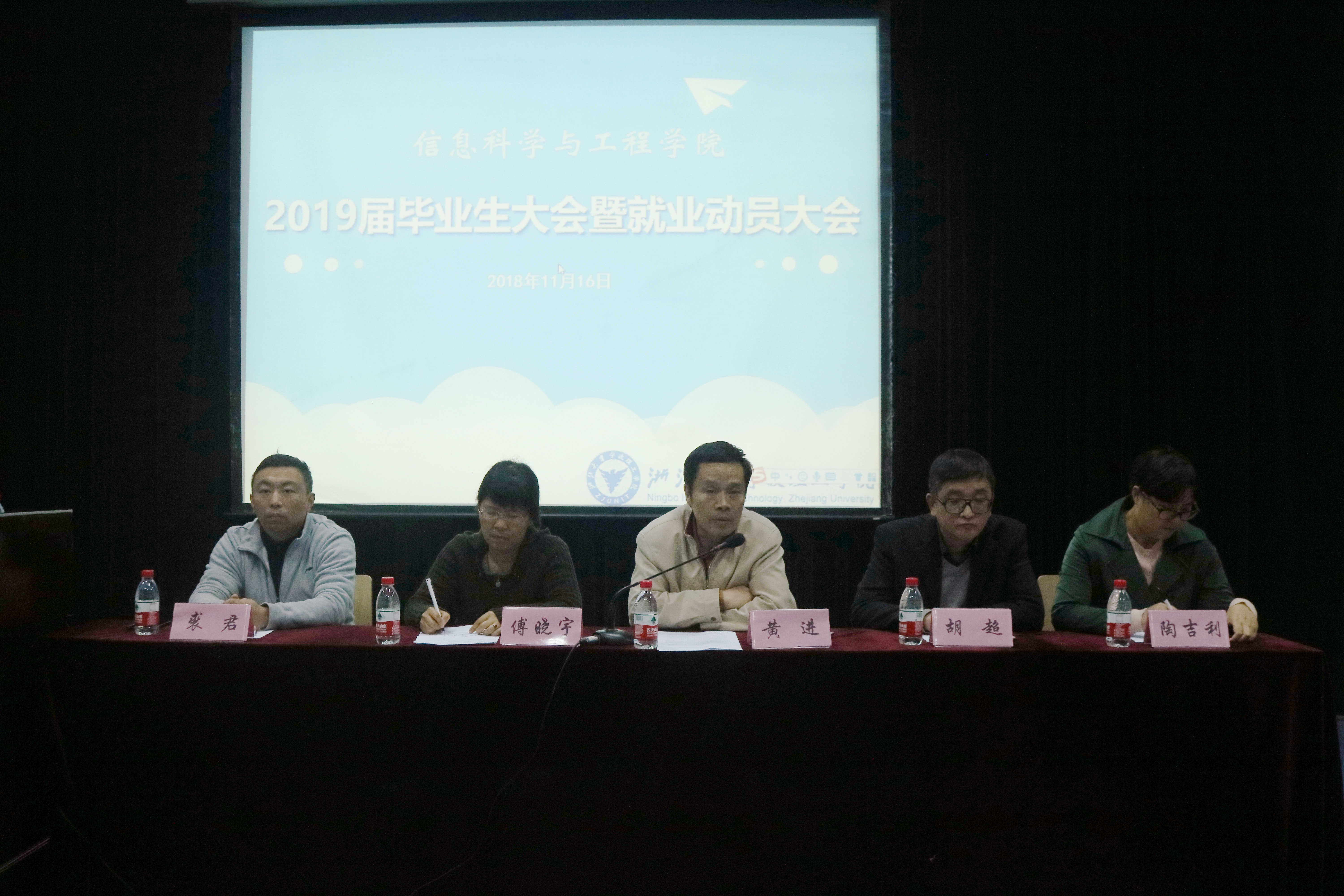 为推动公司毕业生工作的顺利开展,永利65335com于11月16日下午在NF103教室召开2019届毕业生大会暨就业动员大会。永利65335com经理黄进、党总支书记胡超、党总支副书记傅晓宇,副经理陶吉利、经理助理裘君,永利65335com党政、教务、学工等老师,以及2019届全体毕业生出席本次会议。大会由永利65335com党总支副书记傅晓宇老师主持。