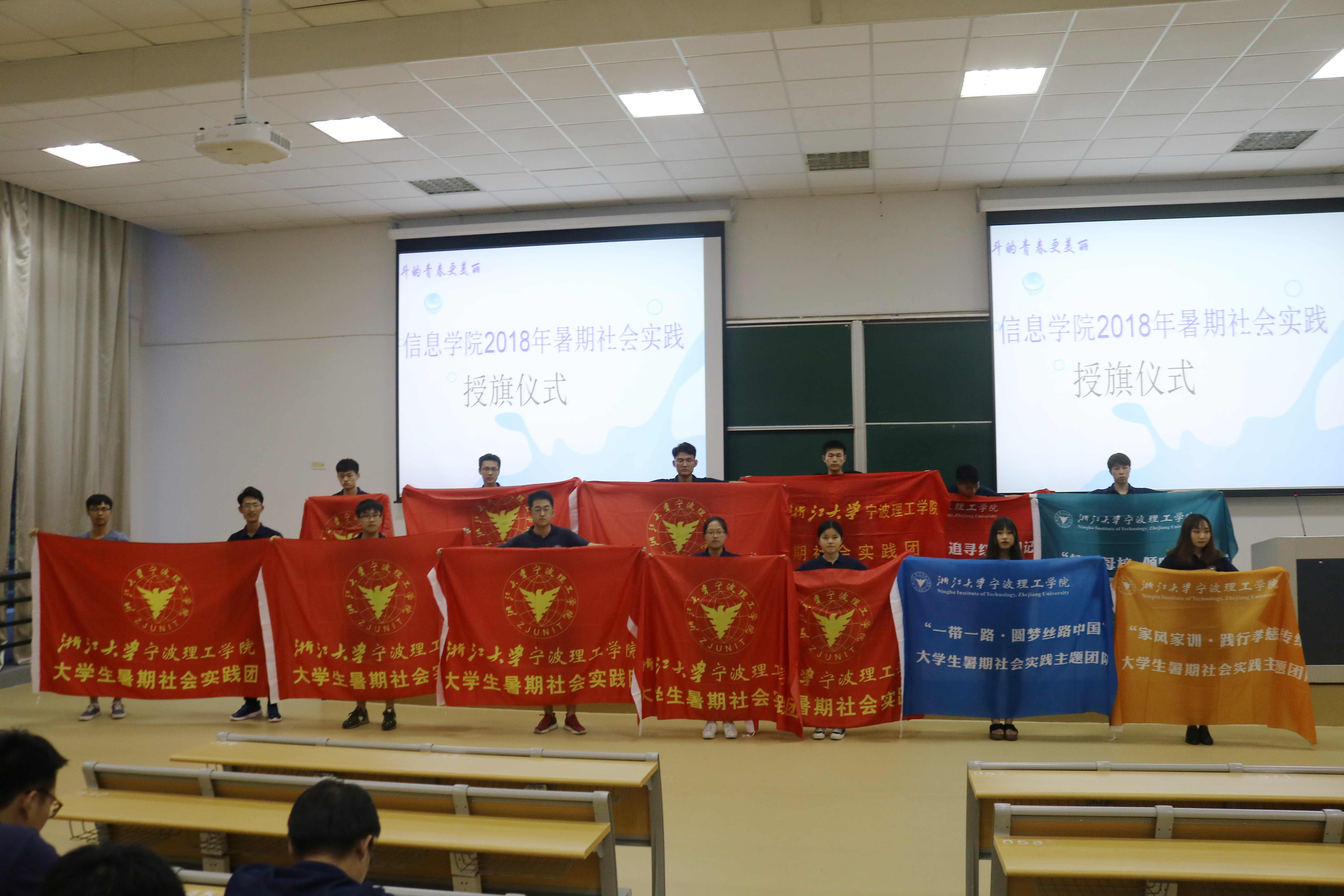 永利65335com于7月5日晚6点30分在SB104教室举行2018暑期社会实践出征仪式,永利65335com党总支副书记傅晓宇老师、团委书记龚欣欣老师、辅导员徐益亮老师及公司暑期社会实践全体成员参加此次仪式。