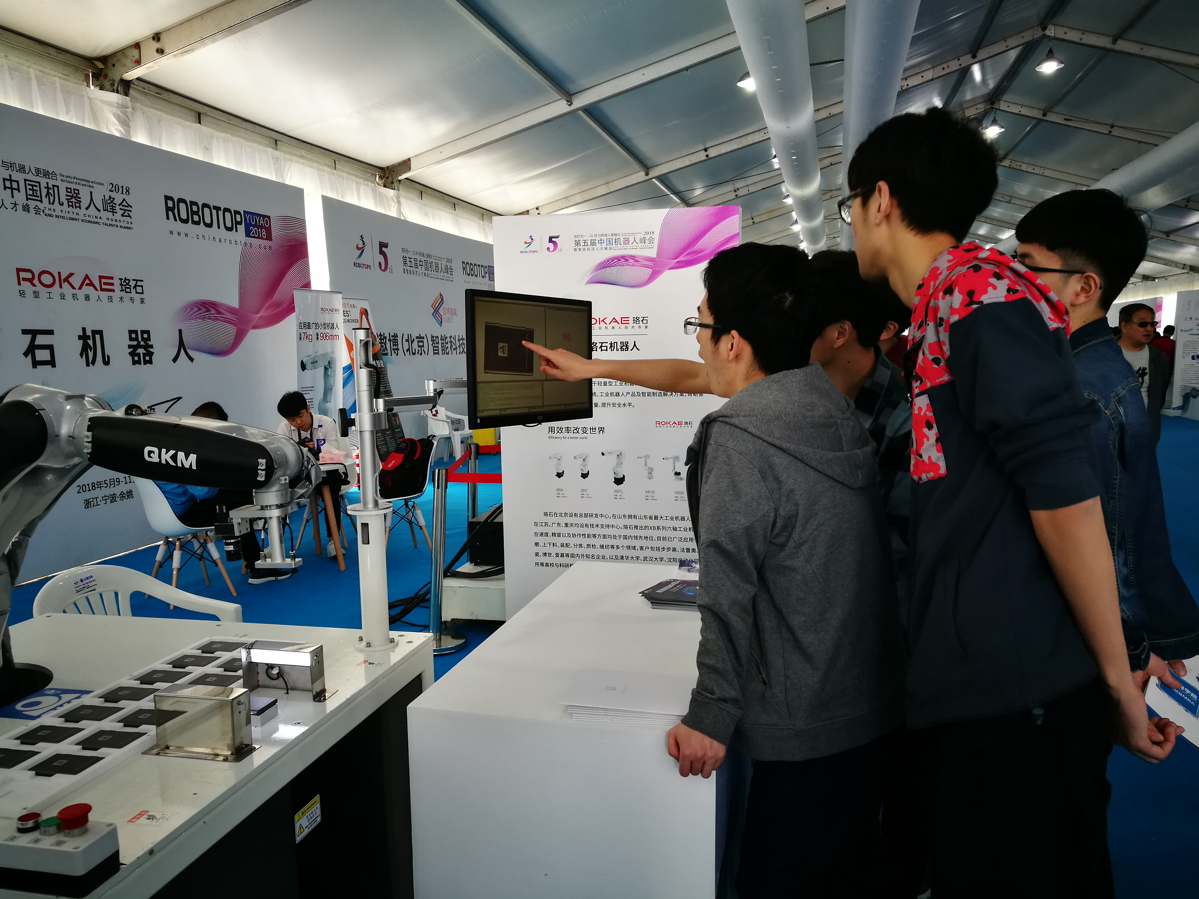 峰会的现场人头攒动,好不热闹,各行各业的机器人模型和产品吸引着同学们不断驻足留念。刚从浙江省机器人大赛现场归来的几位同学更是心潮澎湃,展会时上形形色色的各种功能的机器人让他们叹为观止,热情与企业进行了详细的咨询与交流。智能行业的迅猛发展和现场的最直观体验在每位同学的心中激起不一样的涟漪: