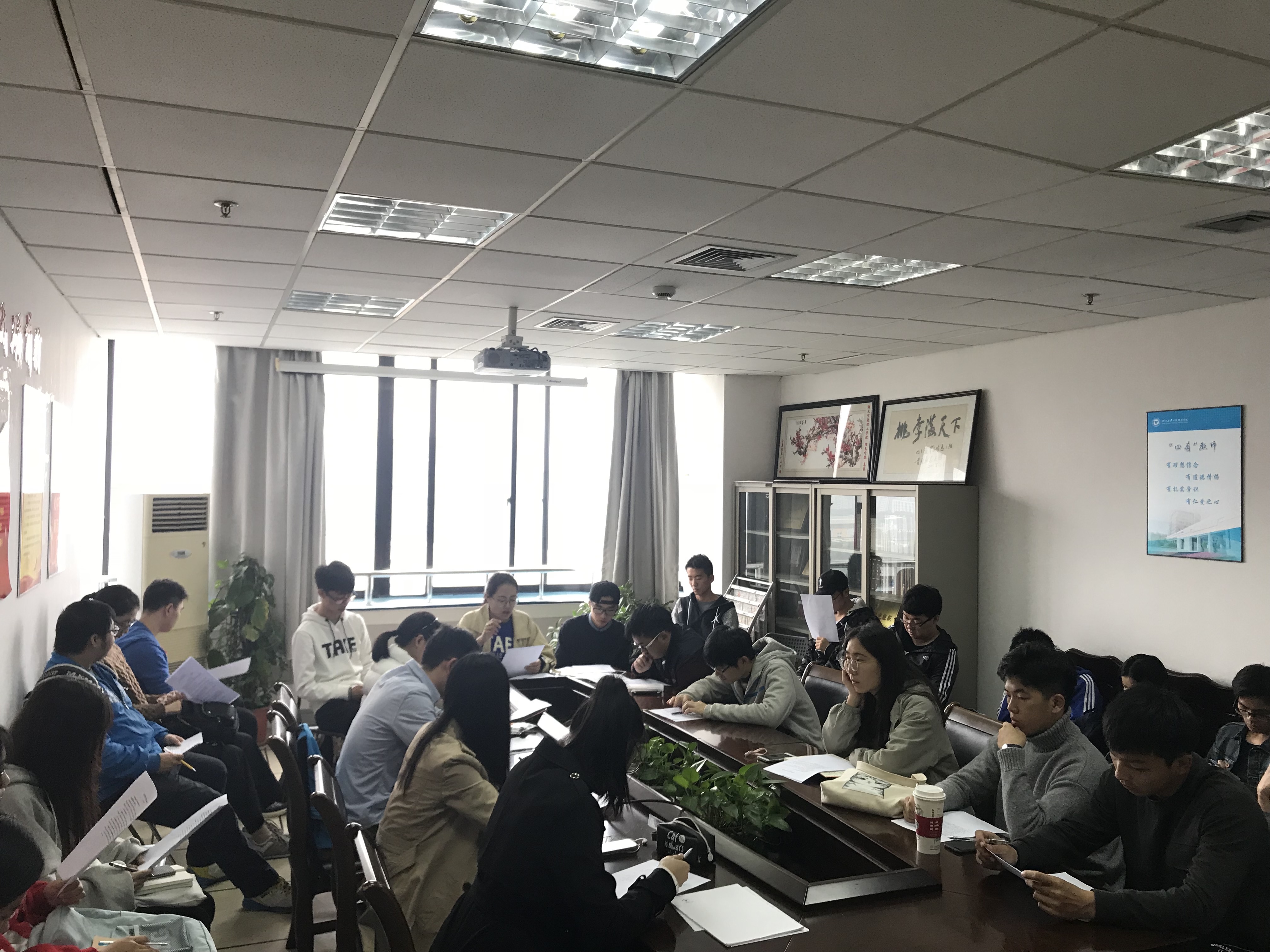 首先,龚欣欣老师强调班级团支书作为员工干部应做好员工工作,关注班级特殊群体,做好防骗防盗宣传工作,同时强调文明校园检查相关工作,包括加强学风建设、强调期中考试的考风考纪以及禁止在员工公寓内使用明火、抽烟等,在整个过程中全体团支书认真投入听讲并记录相关内容。随后,永利65335com团委组织部部长赵培冲同学宣读关于组织2017年团支部“党章学习”活动的通知,活动将以宣传党的十九大会议精神,喜迎改革开放40周年,争创宁波市文明城市五连冠和创建文明校园为主要背景,“不忘初心,牢记使命”为主题开展,龚老师也对团支部“党章学习”活动提出了要求,意在帮助青年团员树立正确世界观、人生观、价值观,会中各团支书对活动的疑问也一一得到解答。