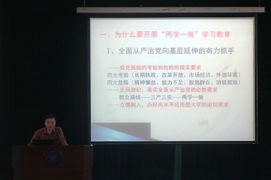5月25日晚上、5月27日下午,永利65335com分别召集全体教工党员和全体员工党员,召开公司“两学一做”学习教育专题党课暨动员部署会。党总支副书记张杰讲党课,并就永利65335com开展“两学一做”学习教育作了动员部署。