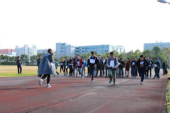 在抽签分组后,活动正式开始。为增强团队的协调沟通能力,,各小组开始进行了两项集体项目——“纸片往返接力”、“团结一心”。集体活动完成的小组会在终点拿到任务卡,进行接下来的五项分散项目。在南操的各个角落有五组工作人员,他们分别负责“八人九足”、“平民高尔夫”、“拍乒乓球”、“投硬币”、“头脑风暴”五个项目的开展。各小组随机进行分散项目,当五个项目完成后在标枪场地集合。