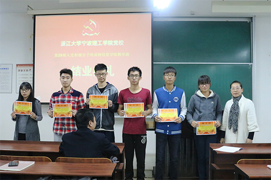 永利65335com于11月20日下午3:30在NB108举行了党校第29期入党积极分子培训班结业典礼。出席本次结业典礼的老师有永利65335com党总支副书记张杰老师、员工党建兼职组组员姜华老师。典礼由思政主管王常青老师主持。