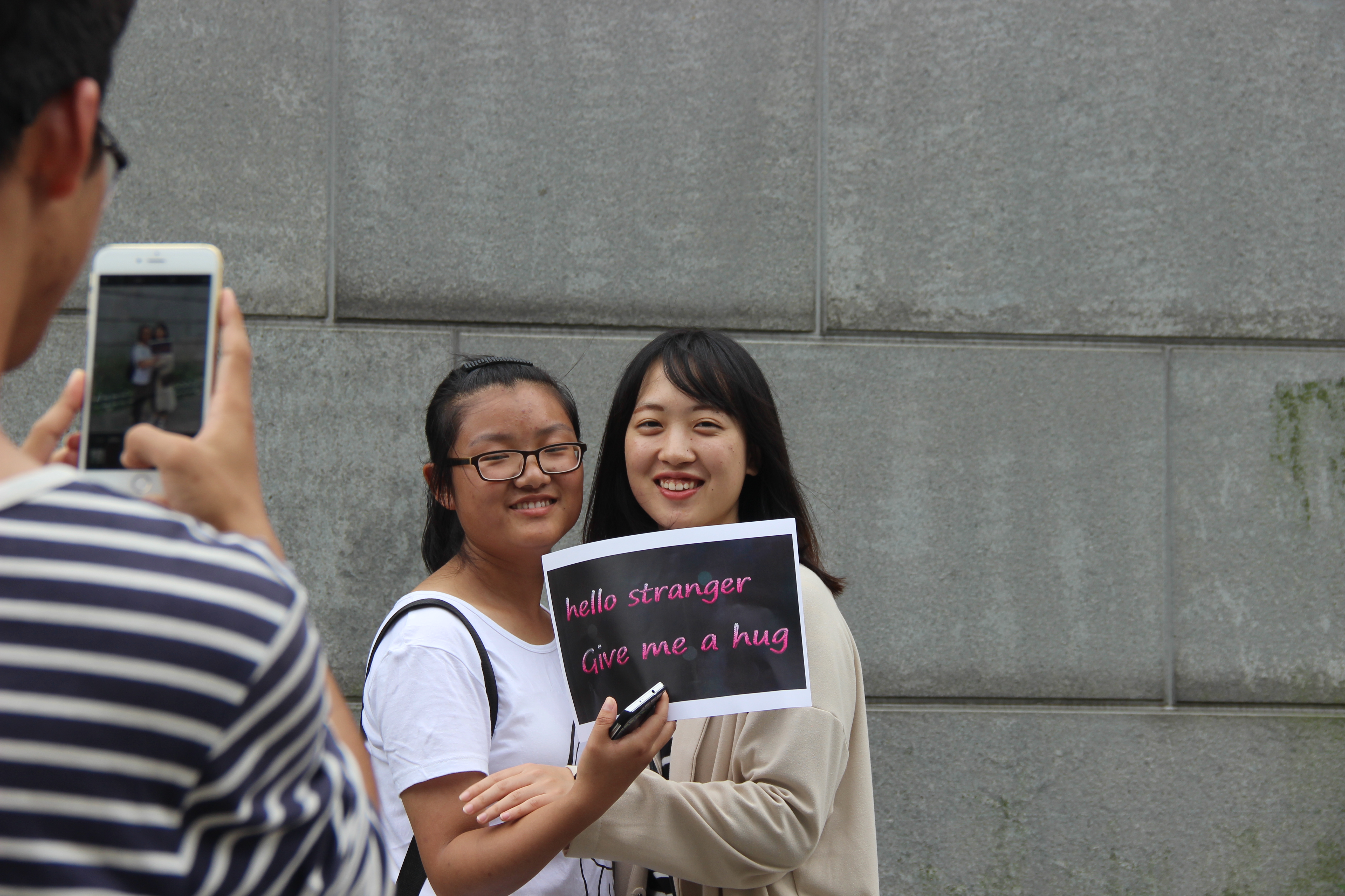 “同学你好,我是某某公司的某某某,我们并不认识,但是你愿意花一点时间与我共同完成跳大绳的挑战吗?”“同学你好,我是某某某,你愿意暂时放下手里的手机,我们互相认识一下可以吗?”活动现场不断响起类似的招呼声,越来越多人加入到了认识陌生人、拥抱陌生人的活动中来。