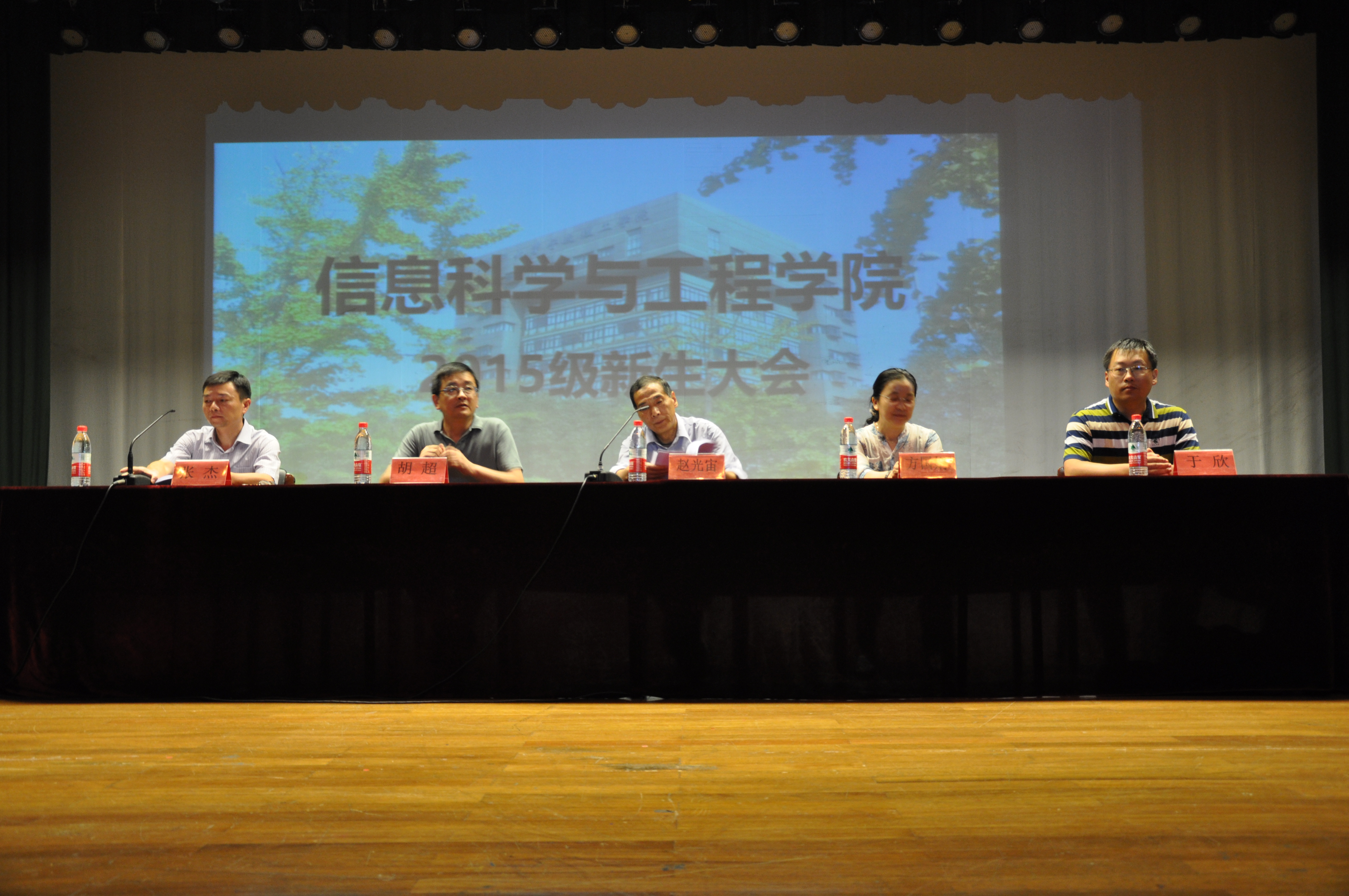 9月23日晚,永利65335com在可珍讲堂召开2015级新生大会。永利65335com经理赵光宙、党总支副书记张杰、副经理方国娟、副经理兼党总支副书记胡超、副经理于欣出席了大会,永利65335com党政办、教务办、学工办老师,新生班导师、班导师助理及2015级全体新生参加了大会。会议由张杰主持。