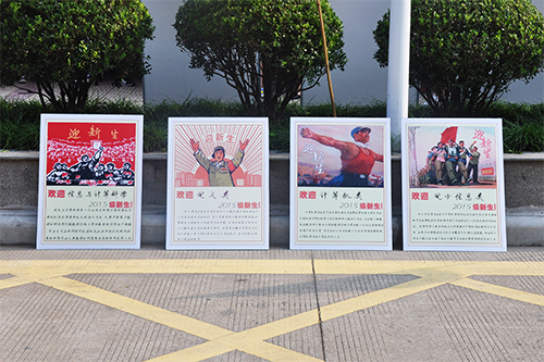 早在暑假期间,公司就着手布置迎新活动,对新生引导和安排流程进行了统一规范。团委员工会同学制作了精美的迎新海报引导新生报道,并在各个路口安排了迎新志愿者帮助新生报道。迎新工作有条不紊地进行,并顺利完成。