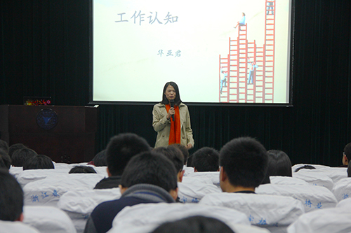 本次讲座邀请到了太平鸟公司HR部门的华亚君老师担任主讲。华亚君老师以工作认知为主题,结合自己十多年的工作经验,首先与同学们分享了自己初次踏入职场的心路历程。随后她分析了当前的就业形势和岗位要求,对同学们进入社会应该做的准备提出建议。华老师建议同学们首先需要做好充分的心理准备,其次学历等方面的准备同样必不可少,然后要有一份简明但不简单的简历以及得体的着装,并且建议同学们应该及时关注招聘信息。华老师特别强调老员工在大学期间一定要有一份适合自己的职业生涯规划。讲座最后,华老师与同学展开现场问答,对同学关心的问题一一做了解答。