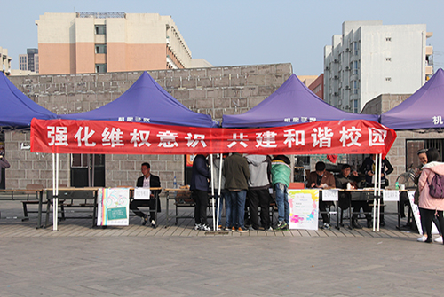 3月15日是国际消费者权益日。为响应“权心权意,为你而来”的活动主旨,更好地维护师生权益,唤醒大家的维权意识,永利65335com在露天广场举办了免费办理公共自行车租赁卡活动。
