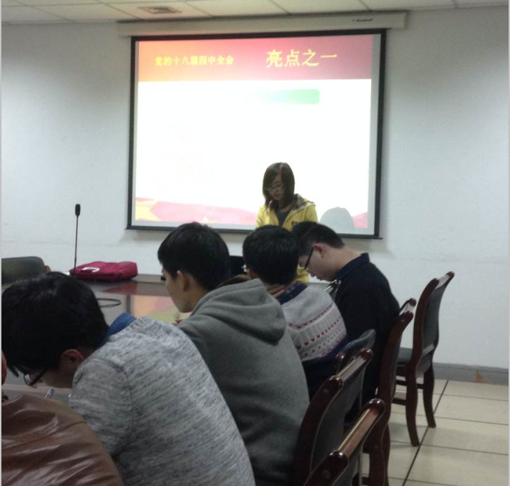 学习会上,各党支部党员对十八届四中全会公报中“两个关乎”、“三个共同推进”、“五大体系”、“六项重大任务”等内容进行了深入学习领会,并畅谈了个人的学习体会和认识。支部要求每个党员要增强学习的自觉性,充分利用网络、电视、报刊等媒体加强自学,不断提高理论水平与政治觉悟;认真学习领会习近平总书记在党的十八届四中全会上的重要讲话精神和全会精神,认真学习领会《中共中央关于全面推进依法治国若干重大问题的决定》,充分发挥党员的先锋模范作用。