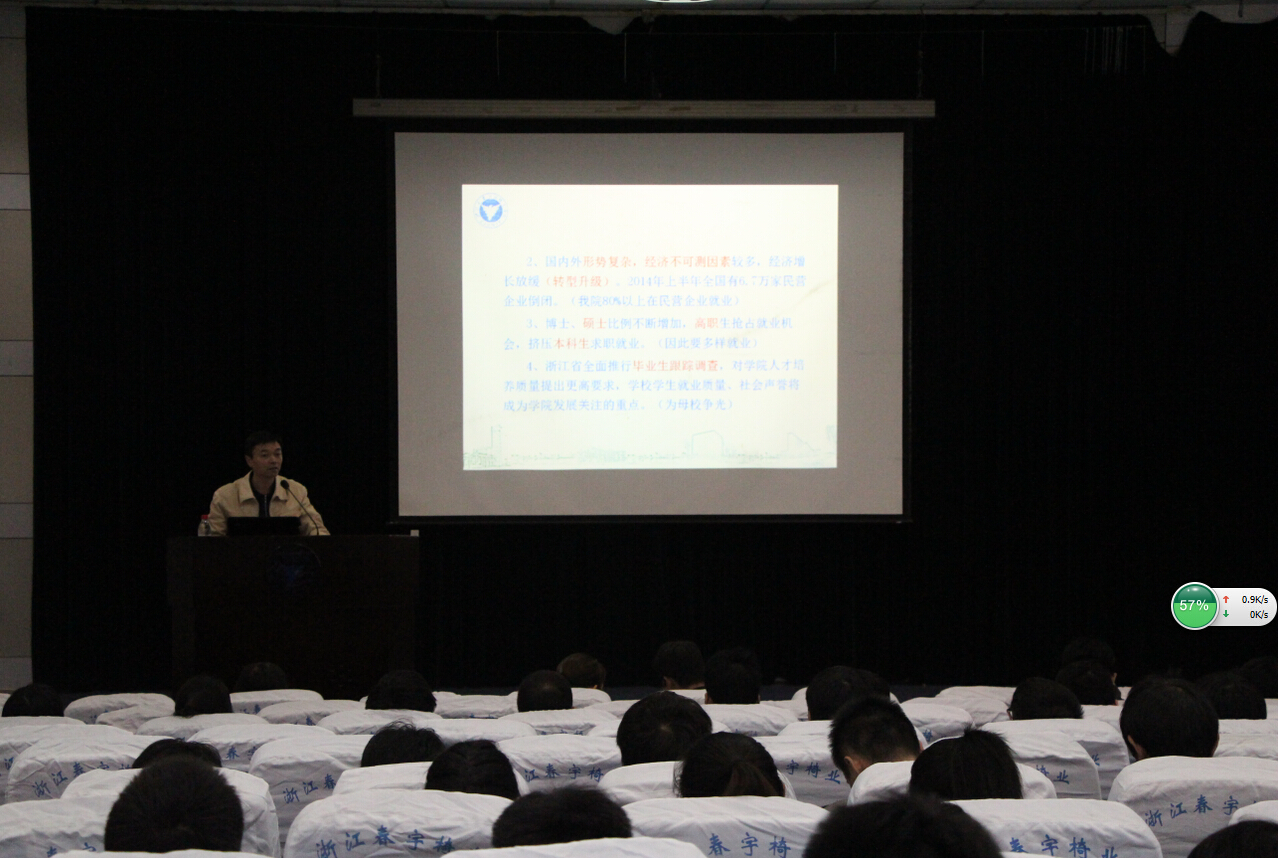 大会上,张杰老师就2015届毕业生就业作了动员讲话。他向2015届毕业生们分析了当前的就业形势,通报了公司和公司近几年的毕业生就业情况,并对2015届毕业生提出了应对当前严峻就业形势的举措和建议,最后还强调了毕业生就业安全注意事项。