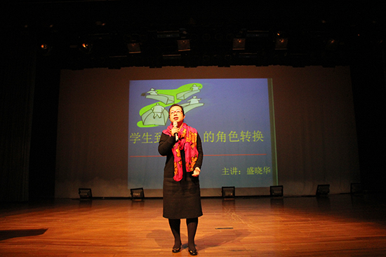 盛晓华女士从“认识自己”、“认识职场”、“就业心态”“就业准备”等方面入手讲述了该如何实现从“老员工”到“职场人”的身份转变。她分别从“职场如战场”、“牢记我是职业人”、“懂得并遵守职业礼仪”、“做合格的职场新鲜人”等方面强调了老员工成功就职后应注意的问题。针对“自主创业”、“跳槽”等热点问题盛晓华女士还提出了自己的看法与建议。
