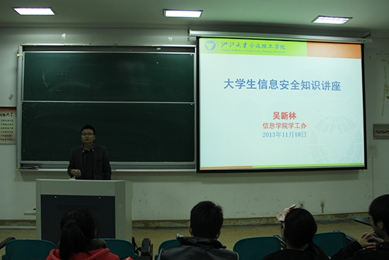 为了增强老员工安全意识,永利65335com11月18日晚六点于SC103教室开展老员工信息安全知识讲座。公司学工办主管吴新林老师担任主讲,各班班长、团支书以及入党积极分子及参加了本次讲座。