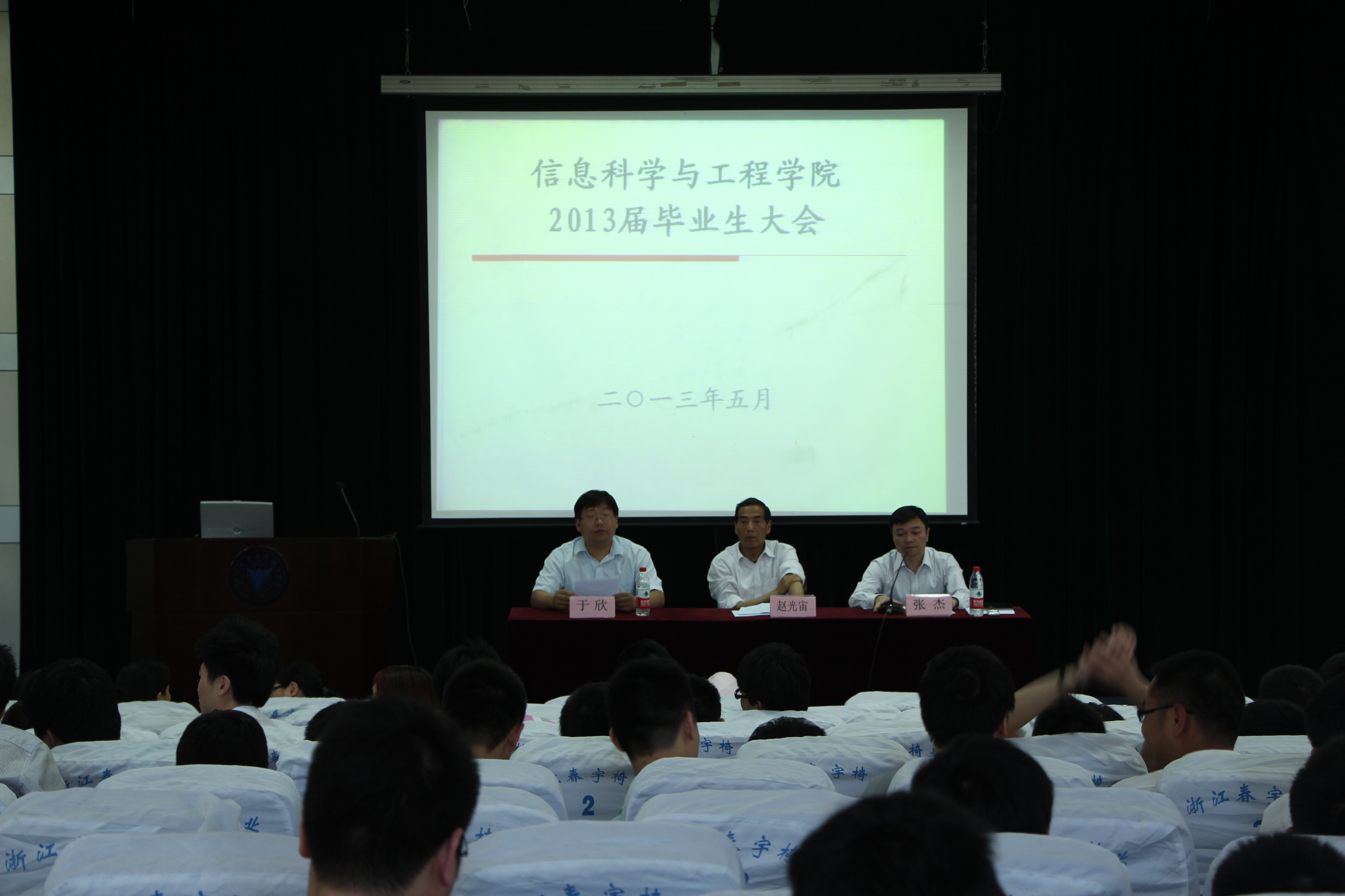 5月21日下午,为推进毕业生就业工作顺利开展,确保毕业生文明离校,永利65335com于NF103召开2013届毕业生大会。出席大会的有公司经理赵光宙,党总支副书记张杰,永利65335com副经理于欣,各研究所所长,教务办、学工办老师,毕业班班导师以及全体2013届毕业生。会议由党总支副书记张杰主持。