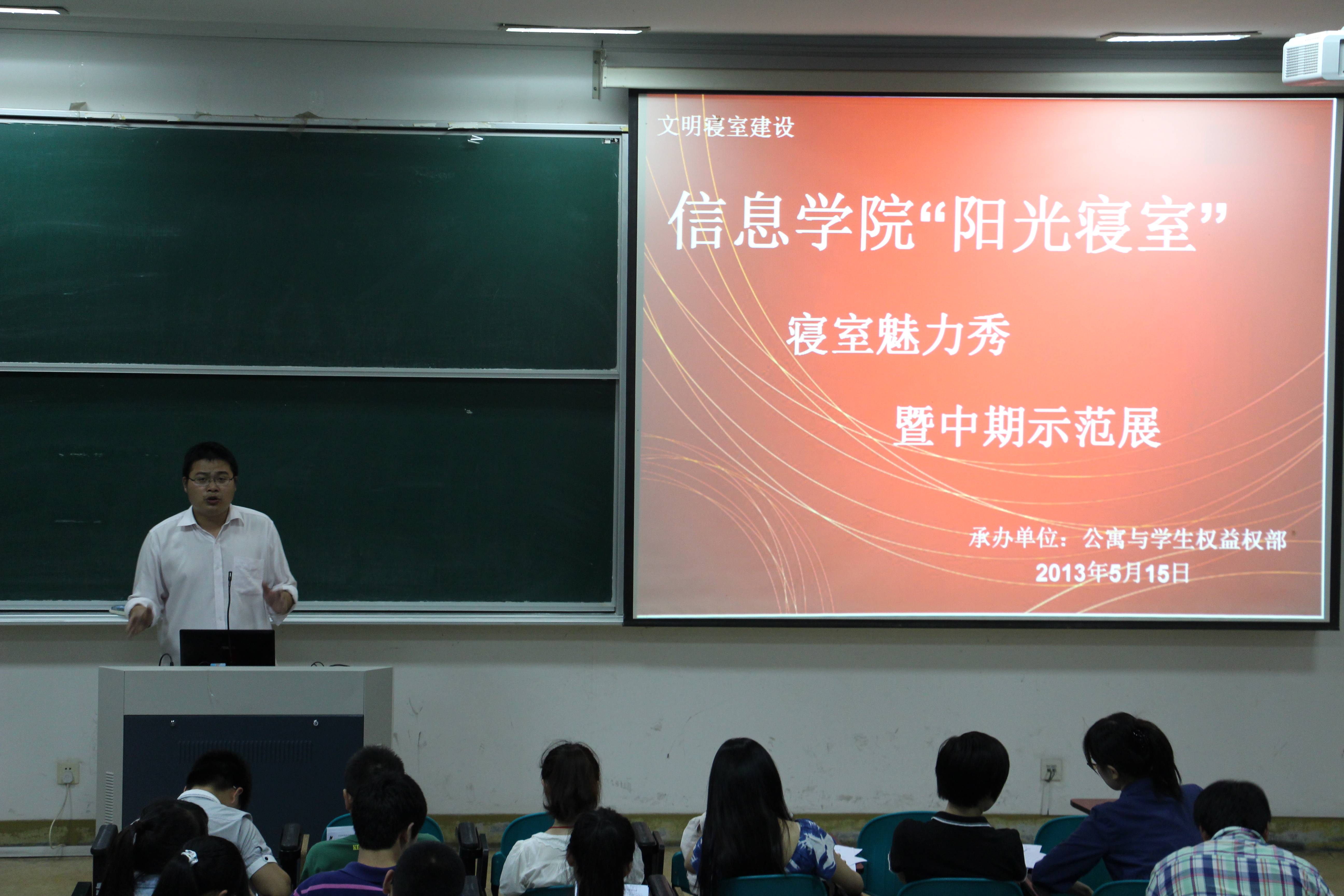 为加强文明寝室建设,永利65335com于5月15日在sc103举行了第三届“阳光寝室”中期示范展暨寝室魅力秀。公司辅导员王海波老师,各班班长、团支书,公司员工会主要员工干部及参赛寝室人员参加了本次评选活动。