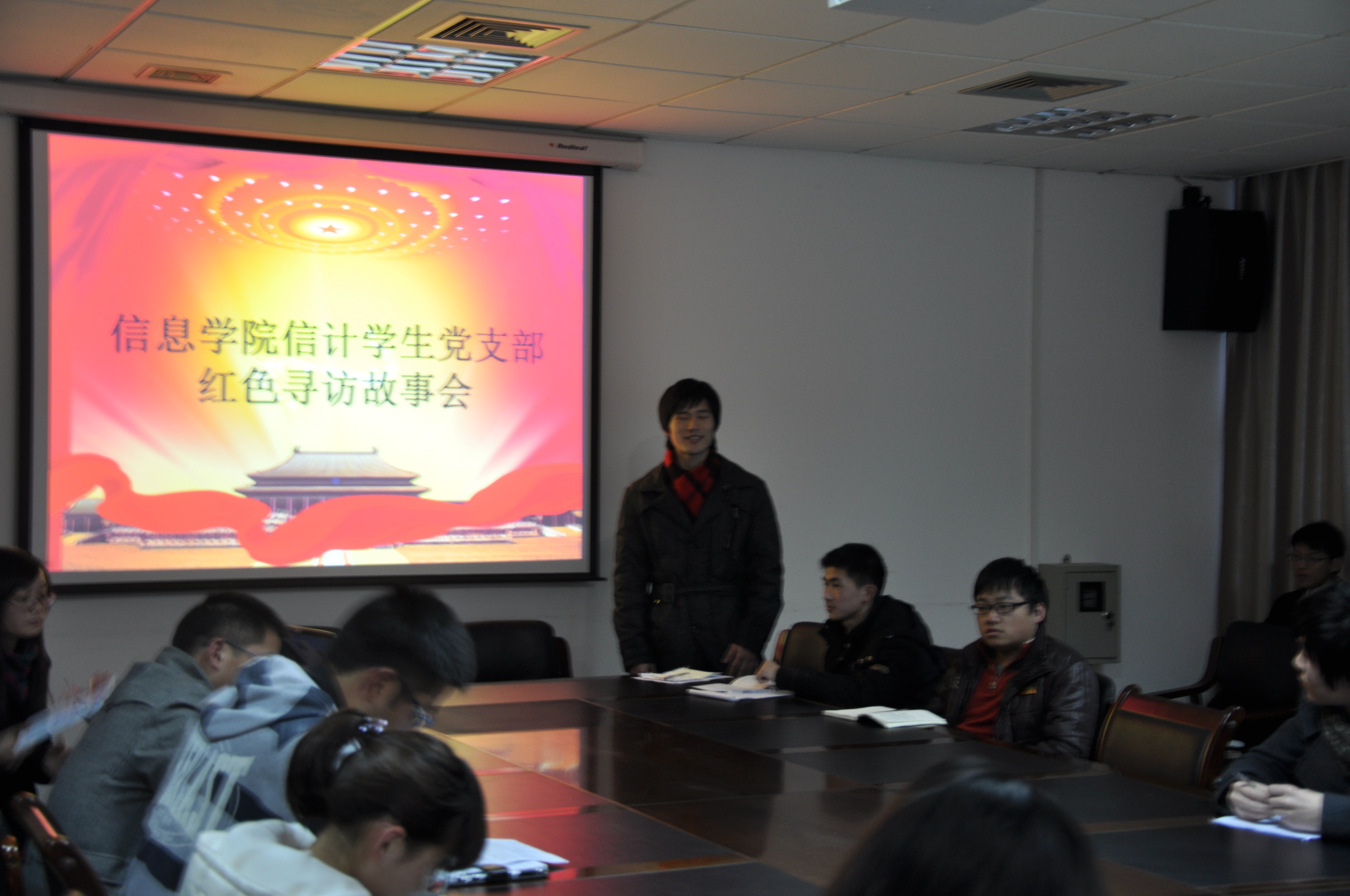 2011年12月20日下午,永利65335com信计员工党支部在石麟602会议室举办“红色寻访”故事会,故事会由支部书记吴新林老师主持,信计员工党支部全体党员、入党积极份子和2011级新生班级骨干参加了故事会,故事会通过讲述员工在寻访红色人物和景点中的亲身感受,感动了与会师生。