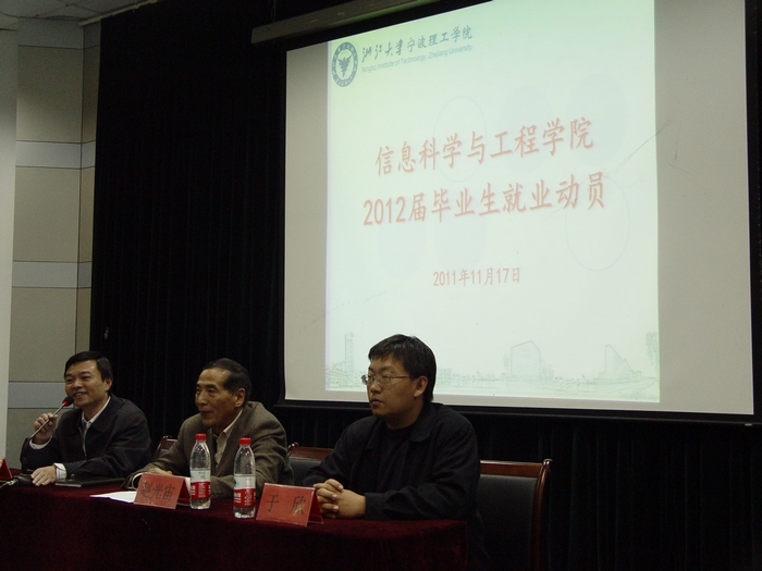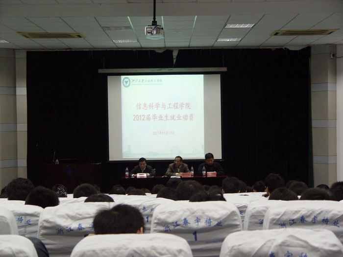 11月17日晚6点整,永利65335com2012届毕业生就业动员大会于NF103顺利召开。出席本次大会的有公司经理赵光宙,党总支副书记张杰,公司副经理于欣,公司各研究所所长,毕业班班导师、学工办老师以及永利65335com2012届全体毕业生,大会由张杰老师主持。