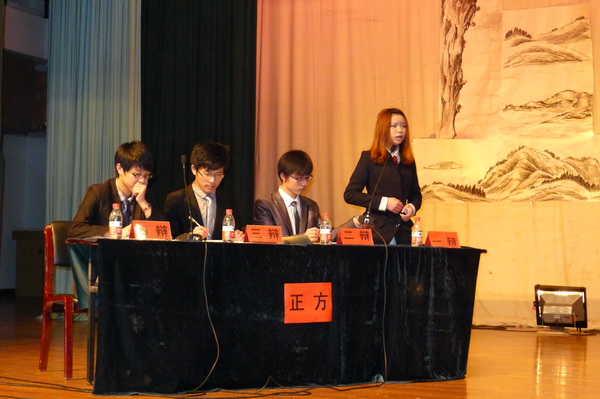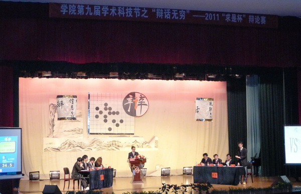 辩论是一场没有硝烟的战争。一场辩论赛,呈现给观众的是辩手们激情洋溢的争辩;但在这背后,却是我们的辩手熬夜讨论、激烈争论的身影。通过辩论赛,不仅让同学们看到了辩论的激情,同时也让大家学会了“真理、求知、明辨”。