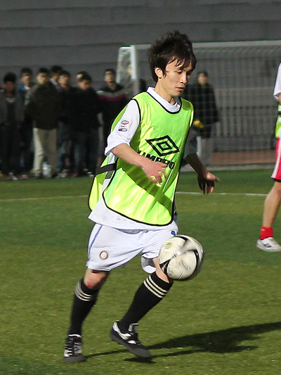 在双方队员互相握手以示友好之后,随之而来的是一场精彩的足球对攻盛宴。开场不久,信息队员便占据了场上的主动权,无论从防守亦或进攻上,都以积极的态度去拼抢,前锋吴威更是屡次突破对手防守,给土建队员造成了一定的威胁。经过短暂的调整之后,土建队员同样以顽强的精神展开反攻,双方的气势一时间旗鼓相当。场下的拉拉队员们顿时比拼起了嗓门,“阳光信息,永争第一”,“土建,加油”一阵阵响彻球场的呐喊声为赛场上的运动员们送去了源源不断的支持和鼓励。比赛大约进行到十六分钟的时候,信息队员抓住机会,通过一系列的长传和近传配合,最后由楚潇男打入关键性的一球。这系列的精妙配合足以看出信息分院足球健儿们平时训练的默契。由于暂时落后,土建分院的运动员们显得有些急躁,虽然加强了进攻,但是一直未果。信息骄子带着1--0的优势领先结束上半场。