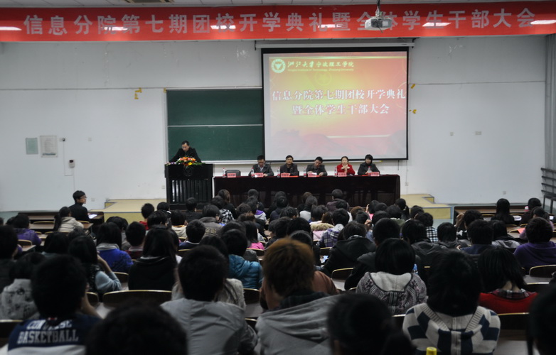 12月2日晚6点,信息分院于SB102举行了分院第七期团校开学典礼暨全体员工干部会议。公司团委副书记毛柯辉,分院思政主管、团委书记吴新林,思政副主管王常青,团委副书记朱熠鹏,团委副书记兼员工会秘书长许璐洋,辅导员马利文出席此次会议,参加开学典礼的有主席团,各班班长,团支书以及团学社青副部及以上全体员工干部。