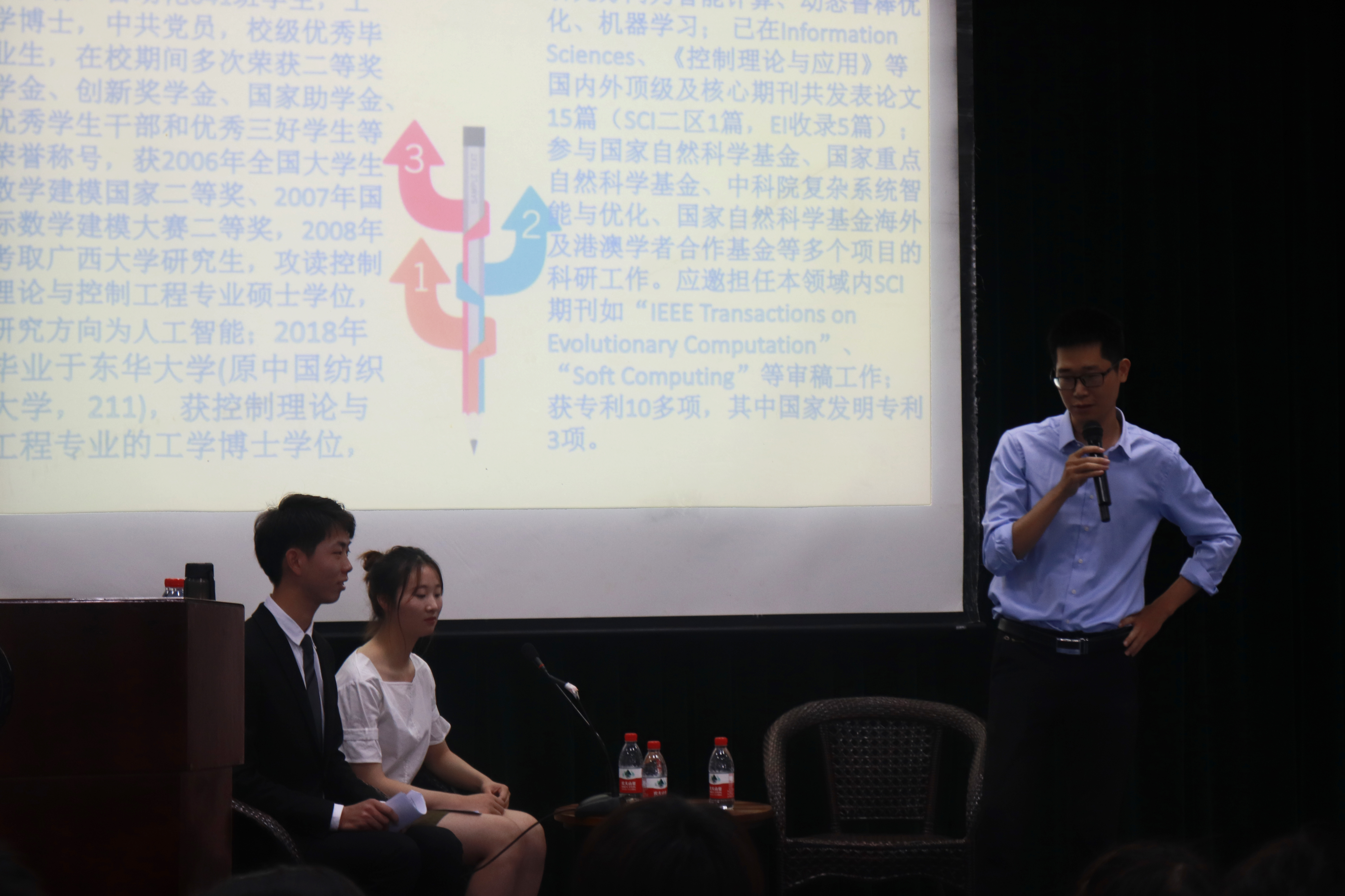 2012届员工支雄飞学长随后登台发言。支学长采用互动的方式回答同学们提出的问题,阐述了他自动化专业的认知。针对同学们关心的考研和就业的矛盾,他也提出了个人的看法和理解,同时对如何平衡工作与学习给与了建议。支雄飞学长现就任于上海国际商业机器公司。2012年在公司毕业后在安徽大学读研,期间获得公司一等奖学金、研究生国家奖学金、安徽省优秀毕业生等荣誉,以第一作者发表论文若干篇,获得两项云计算专业认证,参与并完成国家海洋局大型公益性公关项目。