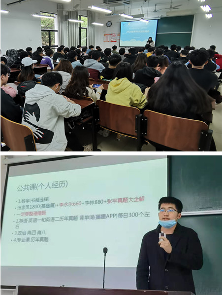 董俊娜老师开门见山指出了本次主题班会的目的,一是学风建设,二是考研、就业动员。她向同学们介绍了公司近三年专升本班级就业、升学和特色就业(两项计划、入伍)等情况,鼓励专升本员工树立自信心,尽早确定升学或就业目标,并坚定地落到实处。随后,今年以总分388分被中国计量大学拟录取研究生的2021届专升本任飞滔同学,与在场的同学们分享了考研心得,从备考公司的选择、备考时间分配、备考心态等方面为在座的同学们指点迷津。