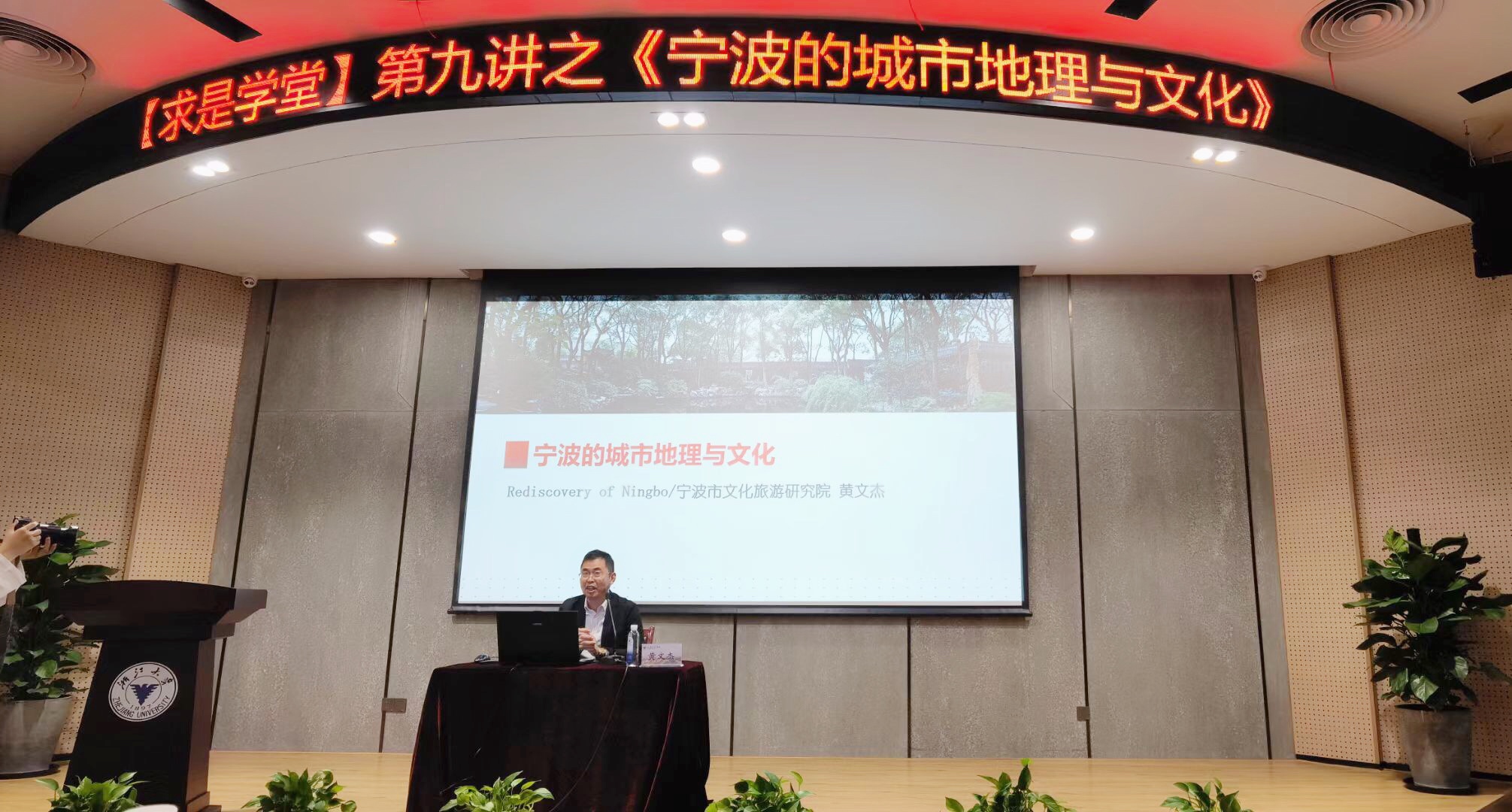 在开场短剧的沉浸式体验之后,现场师生对于四知精神有了非常直观的体验与认知。为促进员工进一步了解孕育宁波四知精神的文化土壤与历史逻辑,现场特别邀请到了宁波市文化旅游研究院副书记、宁波文化研究会副会长黄文杰老师,为大家带来《宁波的城市地理与文化》的主题讲座,该讲座是公司【求是学堂】系列讲座的第九讲。