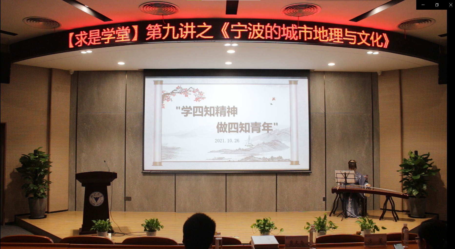 讲座中,黄老师以百科全书式的知识视角、图文并茂的生动展示,为大家分析了宁波得天独厚地理格局优势,详细介绍了宁波悠久的历史、浑厚的文化、蓬勃的朝气。随后,从文化的角度,阐述宁波河海之城的文化在中华文化发展中起到的重要作用,继而对“知行合一”、“知难而进”、“知书达礼”、“知恩图报”的宁波精神进行了深度的解读。整个讲座内容新颖,案例生动,让同学们收益匪浅,对宁波城市精神的新表达有了新的认识。四知精神是宁波历史文化的集中体现,亦是历史与现实的交织缠绕。黄老师鼓励同学们深入了解并学习“四知”精神,将“四知”精神融入到生活的方方面面。