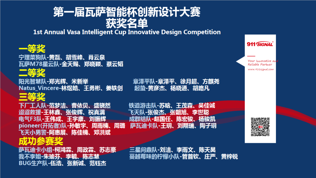 此次大赛不仅提升了同学们团队间的协作配合能力,更给予同学们广泛接触科技发展、社会发展的机会。通过搭建本次创新设计大赛平台,推动了校企双方在科技、人才、就业等方面的深度合作,为社会培养更多优秀人才打下殷实基础。第二届瓦萨智能杯创新设计大赛正在紧锣密鼓设计中,让我们期待第二届瓦萨智能杯创新设计大赛!