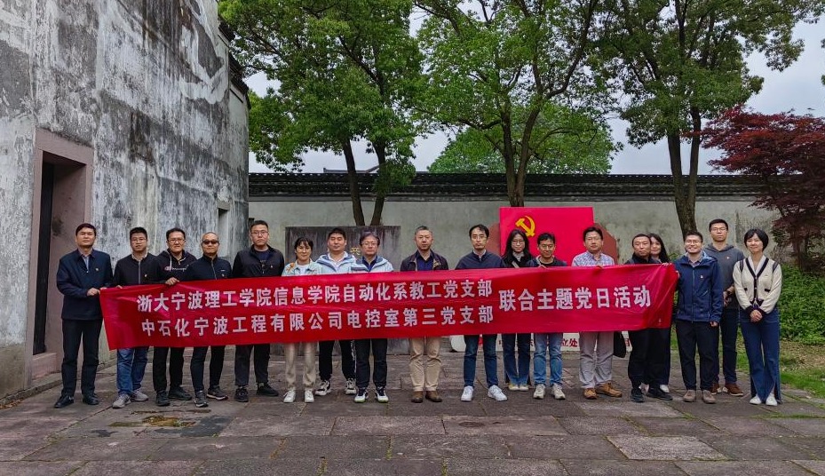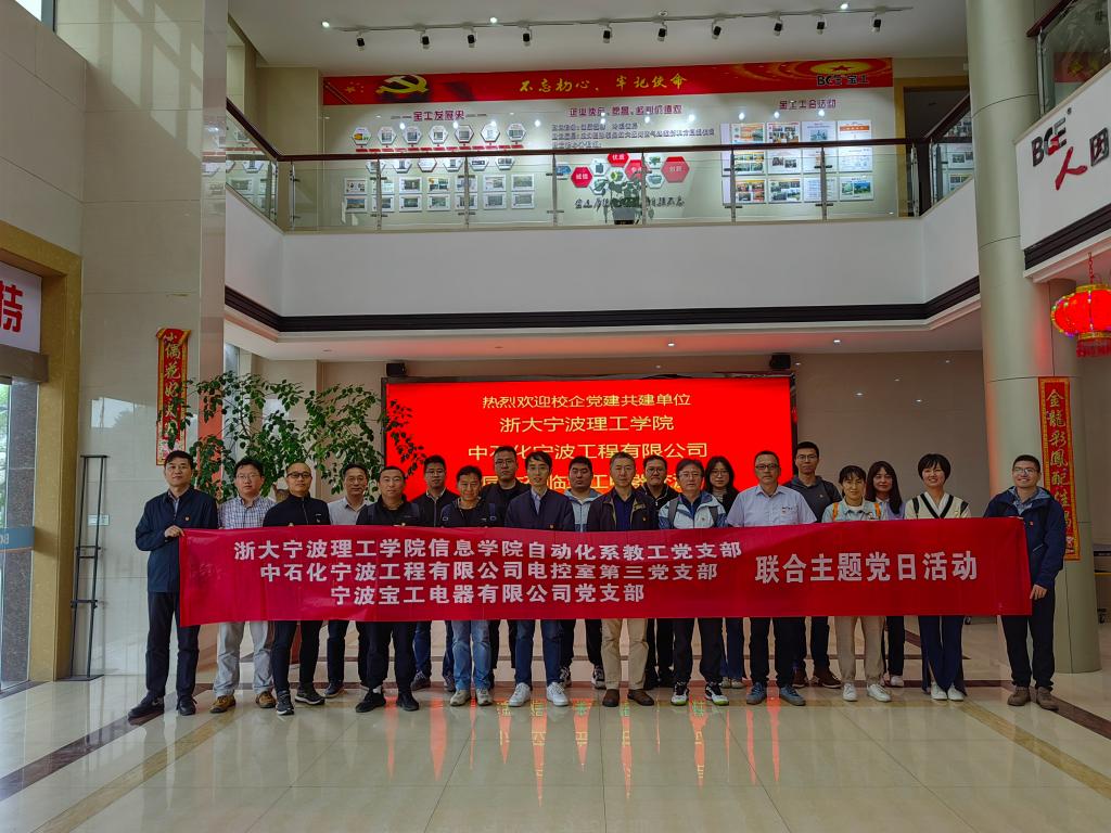 为深入推进学习贯彻习近平新时代中国特色社会主义思想主题教育走深走实,5月7日永利65335com自动化教工党支部,联合党建共建单位中石化宁波工程有限公司电控室第三党支部、宁波宝工电器有限永利65335com党支部开展联合主题党日。