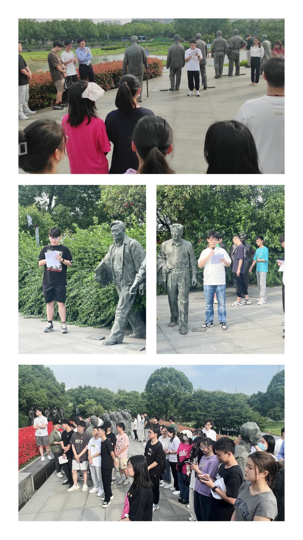 来自三个员工党支部的党员分别结合专业分享了三位优秀甬籍院士科技报国的精彩故事。师生党员们倾听着院士故事,在院士林间仔细端详每位院士雕像,想象着院士们在科研岗位上精益求精、孜孜不倦钻研的场景。党的百年奋斗史也是一部科技发展史,在场的党员、发展对象们为科技巨匠攻坚克难、忘我奉献的精神深深感动,备受鼓舞。