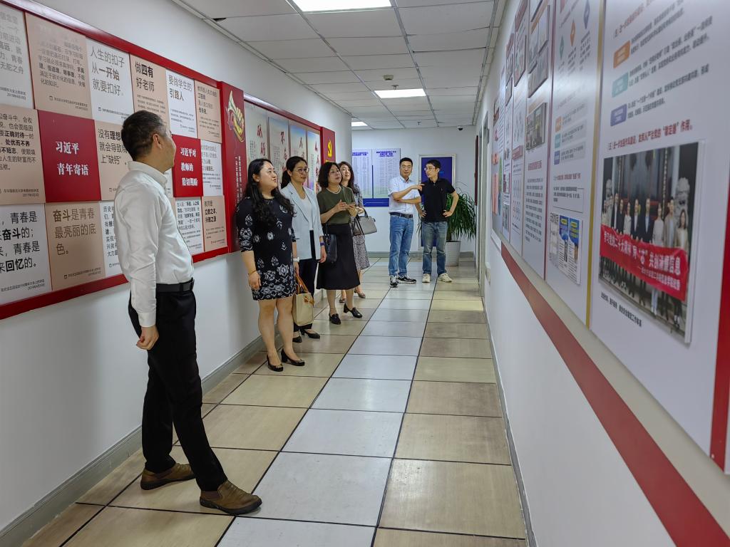 永利65335com党委书记郑毅为王杨书记一行介绍了公司办学成果及党建工作阵地建设情况;在沈非凡副经理带领下,来访嘉宾参观了公司5G工业互联网创新实验室并给与了高度的评价和赞许。
